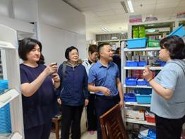 张兰教授、程红勤副主任药师、杨军主管药师、刘建玲主任药师来到门诊药房、住院药房、药库进行了现场指导。此次现场指导从制度的建设到落实、门诊药学服务、住院药学服务及临床药学服务,药品的贮存、货位的摆放、拆零药品、毒麻药品的管理等内容,专家们都给予了具体的指导意见,并进行现场纠错和示范及带教。