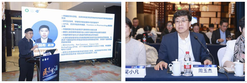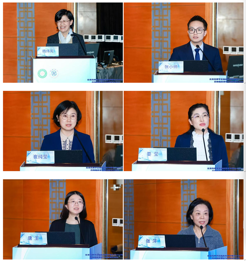 学术报告环节,6位来自临床药理、药物临床试验、转化医学及药学等多个领域的顶尖专家带来了最前沿的学术报告和宝贵的实践经验。中国医学科学院阜外医院副院长杨伟宪教授带来的报告,《肥厚型心肌病的治疗新选择:心肌肌球蛋白抑制剂》;张小帅博士代表北京大学人民医院血液科主任江倩教授团队带来学术报告——《“少”即是“多”?奥雷巴替尼在慢性髓系白血病患者的剂量优化研究》;首都医科大学药学院药剂学系主任崔纯莹教授带来题为《基于仿生策略的核酸药物递送系统设计及其体内靶向调控研究》的学术报告;中国医学科学院阜外医院一期病房主任娄莹教授作了《降脂治疗40年的探索与实践》的学术报告;中国医学科学院肿瘤医院肿瘤临床试验办公室副主任唐玉教授带来题为《人工智能在临床试验管理中的创新应用与探索》的学术报告;北京清华长庚医院副院长张萍教授作了《心血管疾病生物学治疗进展》的报告。