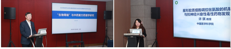 本次沙龙设置了专题报告环节,张永祥教授以“生物网络与中药复方药理学研究”为主题,系统梳理了中药复方药理学的研究脉络,并对中药现代研究的前沿方向进行了展望;许琪教授聚焦“星形胶质细胞调控丝氨酸的机制与抗神经兴奋性毒性药物发现”,分享了团队最新科研成果。