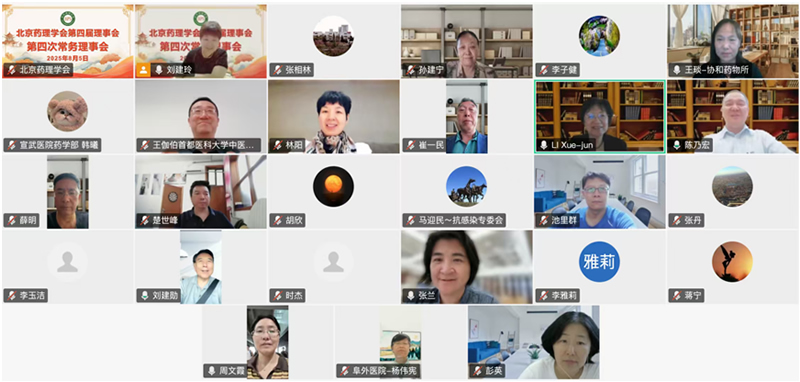北京药理学会第四届理事会第四次常务理事会于2025年8月5日召开。会议由张兰理事长主持。与会的常务理事首先听取了学会秘书处、相关专业委员会的近期工作汇报。会议审议通过了:1、《学术会议费用支出补充条例》,自2025年8月5日正式实施;2、成立“北京药理学会定量药理专业委员会”、“北京药理学会青年工作委员会”;3、定量药理专业委员会、青年工作委员会成立大会定于2025年11月15日(周六);4、2025年学术年会11月15日(周六)在北京人卫酒店举办;主论坛1个设在上午,下午设三个分论坛;分别为临床药理专委会、定量药理专委会、青年工作委员会的分论坛。5、2025年青年科学家论坛拟定于11月8日(周六)在同仁堂研究院举办。
