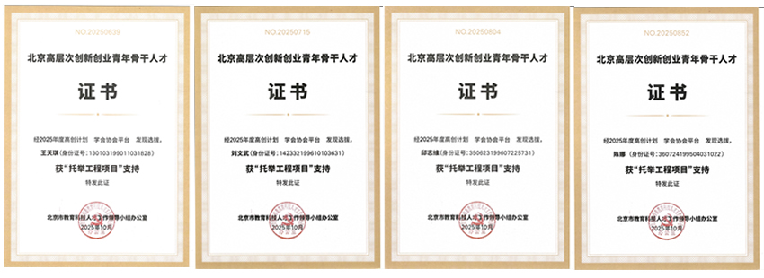 北京药理学会2023-2025年度青年人才托举工程项目被培养人为:陆林院士团队的孟适秋、李子健教授团队的王文景、崔一民教授团队的张宇航、杜冠华教授团队的张雯。